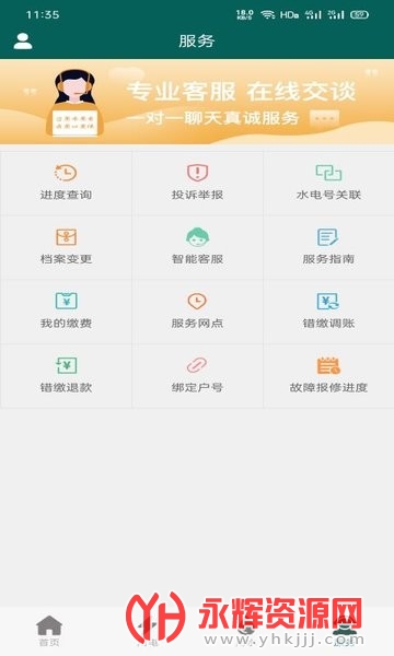 首页快捷服务:直观展示各类常用水电业务功能,方便用户快速访问。