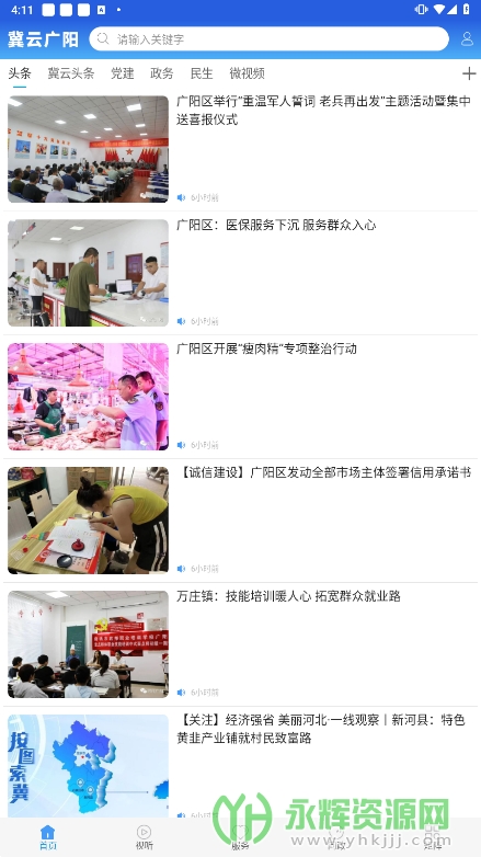 冀云广阳是一款非常好用且功能齐全的移动端掌上信息阅读平台应用软件,专为广阳居民和用户设计打造开发。这款软件能够为用户提供本地新闻资讯、便民服务、权威发布等各类内容,包含精彩视频和直播专题栏目,丰富用户的内容观赏选择。如果您对这款软件感兴趣的话,不妨来永辉资源网下载体验一番吧!