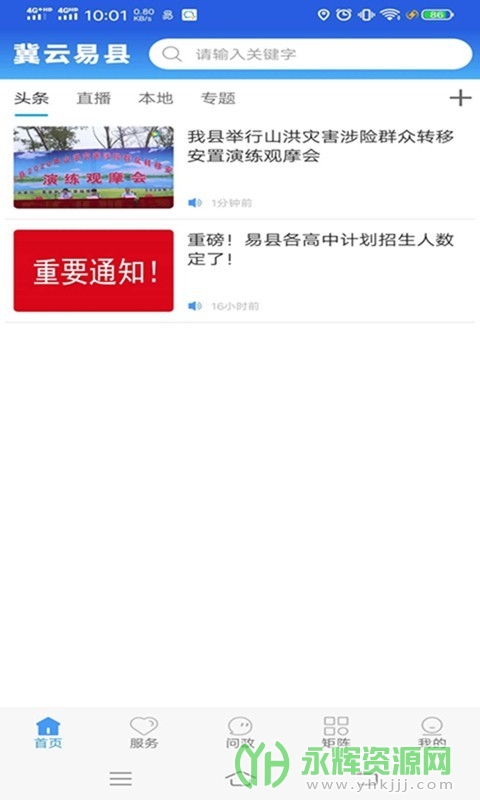 冀云易县是一款非常好用且功能齐全的移动端掌上在线新闻资讯播放平台客户端应用软件,专门为易县本地用户打造开发。这款软件能够为用户提供本地新闻资讯、便民服务和生活服务等多项功能,包括在线办事、生活服务等,为用户提供便捷的生活服务和政务办理功能。如果您对这款软件感兴趣的话,不妨来永辉资源网下载体验一番吧!