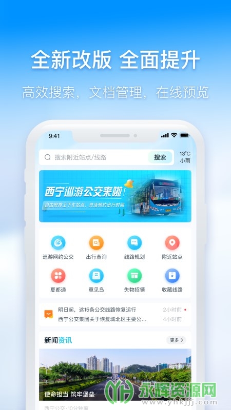 西宁智能公交是由西宁公交公司官方推出的一款实时信息互动的移动应用平台,专为西宁市民提供量身定制的公交出行解决方案。它集成了实时公交信息查询、线路规划、票务处理等多项功能,旨在为用户提供一个便捷、快速、高效的公交出行体验。如果您对这款软件感兴趣的话,不妨来永辉资源网下载体验一番吧!