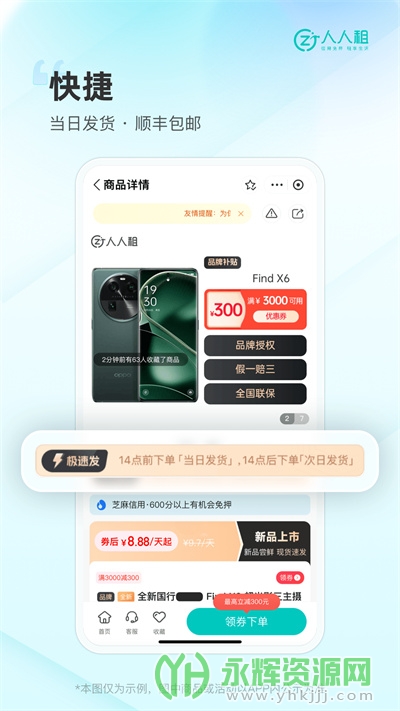 人人租是一款非常好用且功能齐全的移动端掌上租赁平台应用软件,专为数码产品打造开发。这款软件也称为人人租机,专注于提供各种新潮热门科技产品的租赁服务,让用户以较低成本享受到各类数码产品的使用。如果您对这款软件感兴趣的话,不妨来永辉资源网下载体验一番吧!