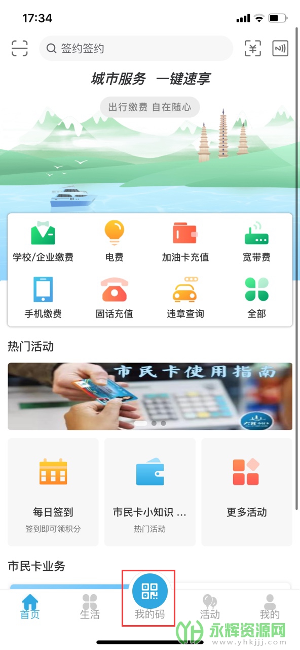 1、打开大理市民卡app,点击我的码