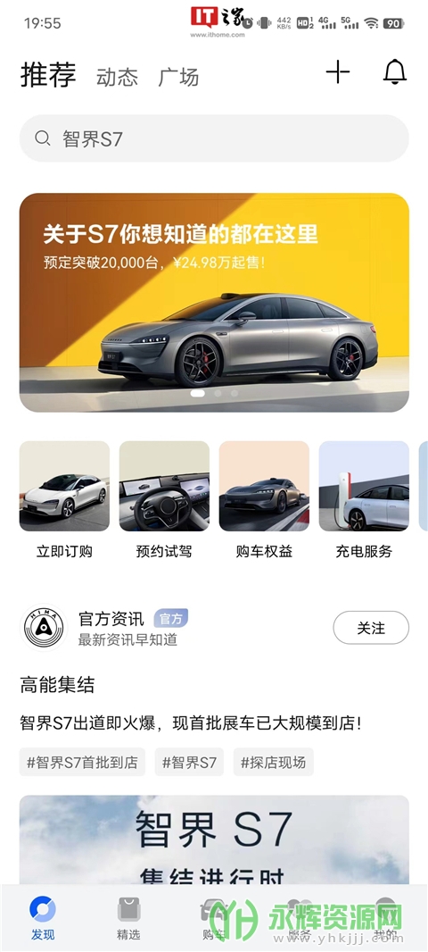 3、购车版块可以预约试驾、订购车辆,目前仅有智界 S7,还提供专属购车顾问电话;