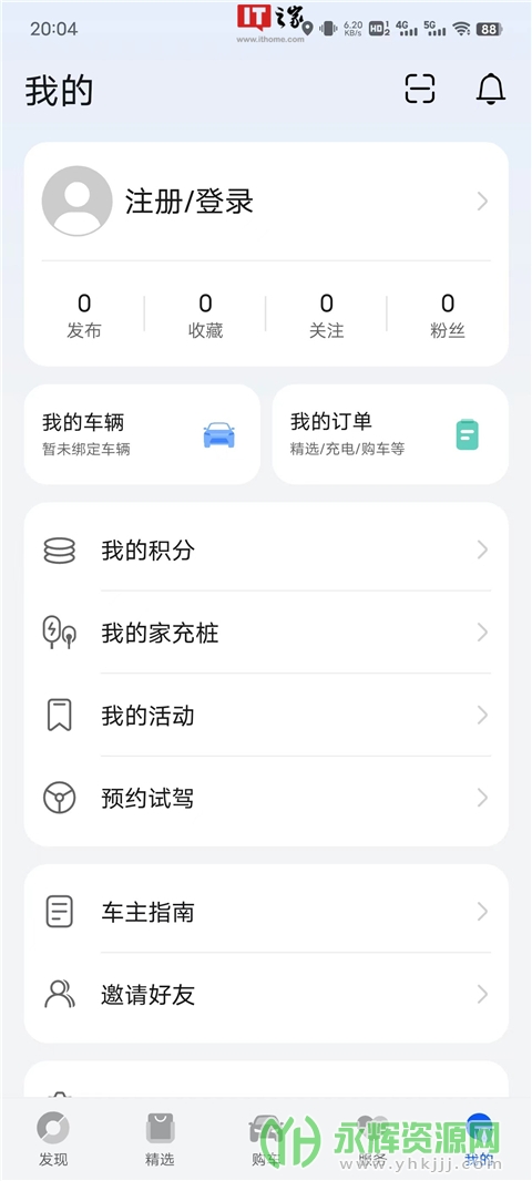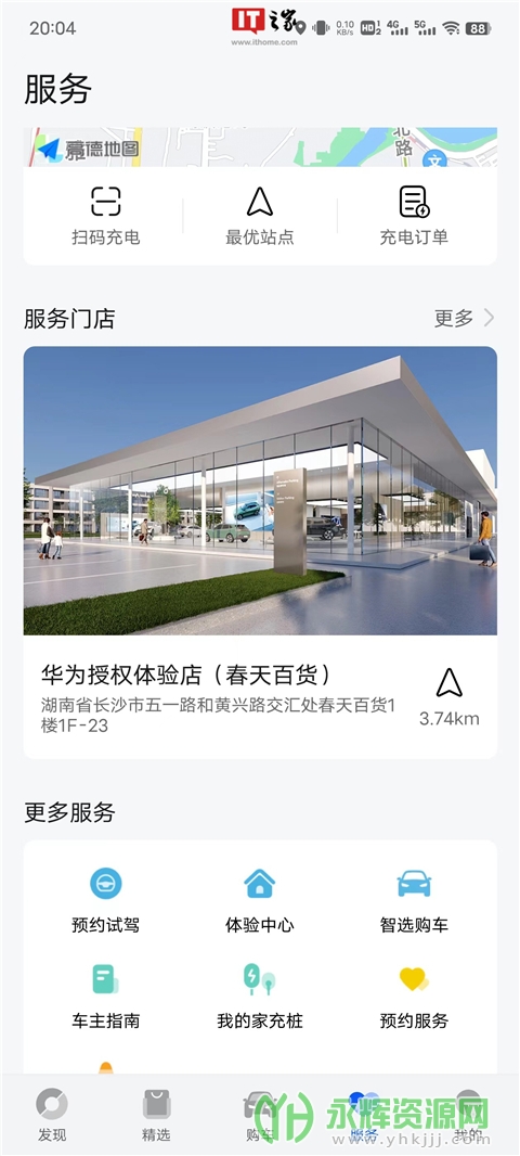 目前该软件支持远程控车(车锁、车窗、后备箱、空调等)、实时查看车辆情况、线上预约试驾、用户社区、充电地图等一系列功能。涵盖发现、精选、购车、服务、我的五大版块。