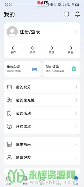 5、我的版块可以查询家充桩、积分、活动等信息。