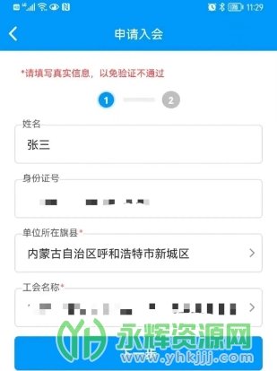 第二步:填写姓名、身份证号,选择单位所在旗县到锡林郭勒盟二连浩特市,搜索所在单位工会名称(可用关键词搜索);