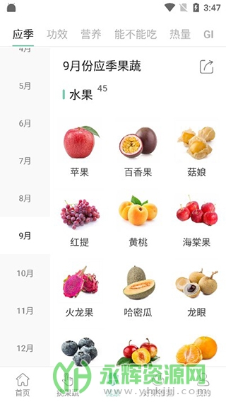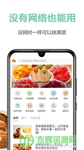 1、这里收录了大量果蔬的信息,用户可以查询任意水果、蔬菜的信息;