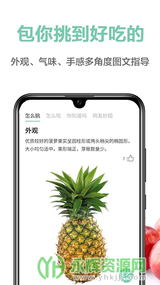 5、能够教导用户如何挑选到好水果,可以从外观、气味、手感进行指导;