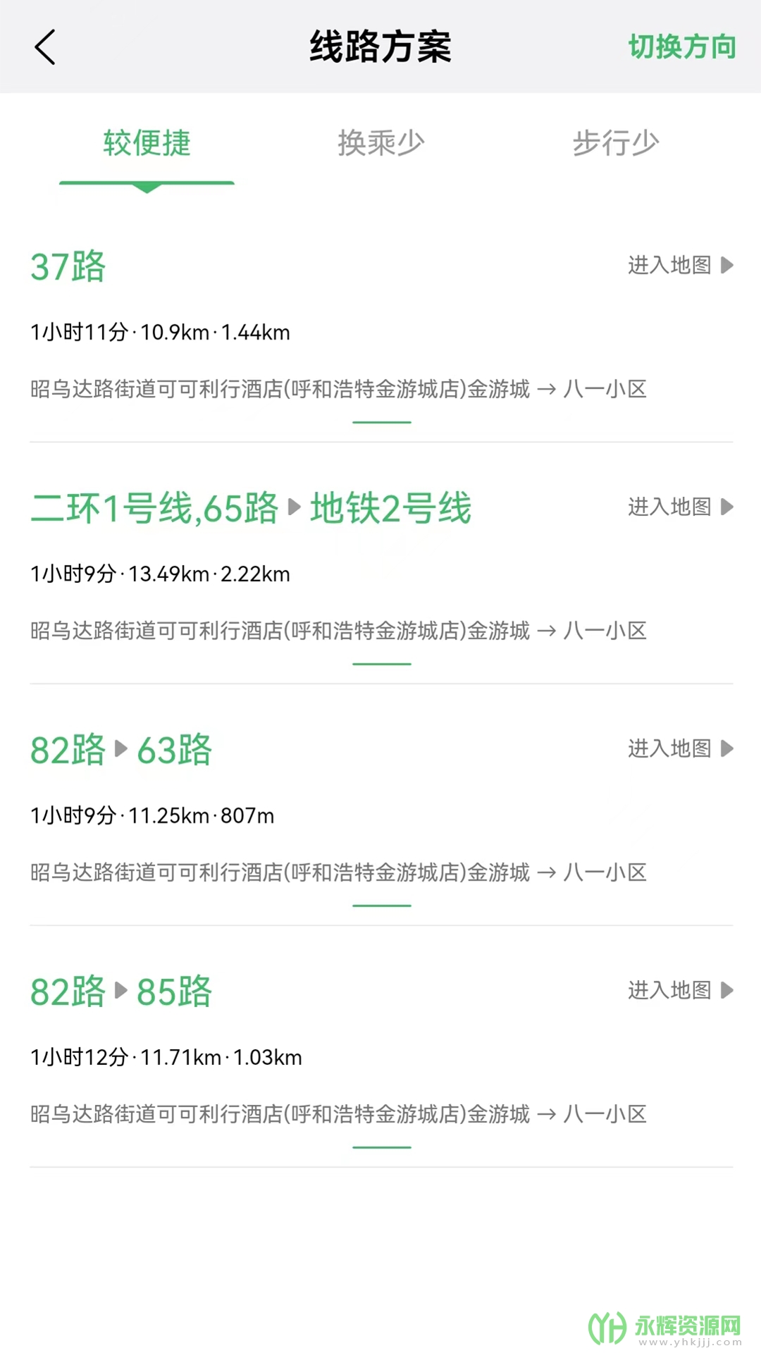 提供呼和浩特市区内大部分公交车运行动态和公共自行车站点位置查询功能