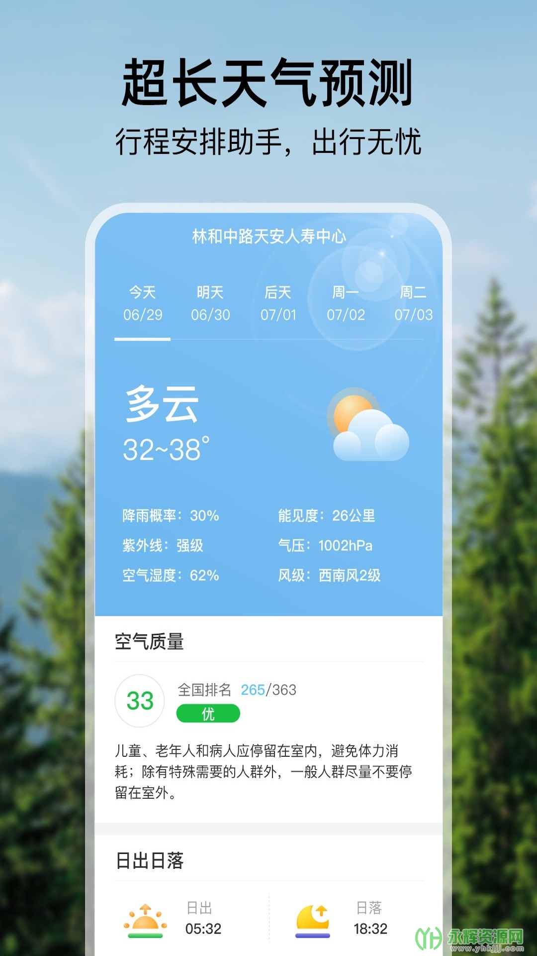 空气质量:关注空气质量状况,提供空气质量指数和健康建议,保障用户健康出行。