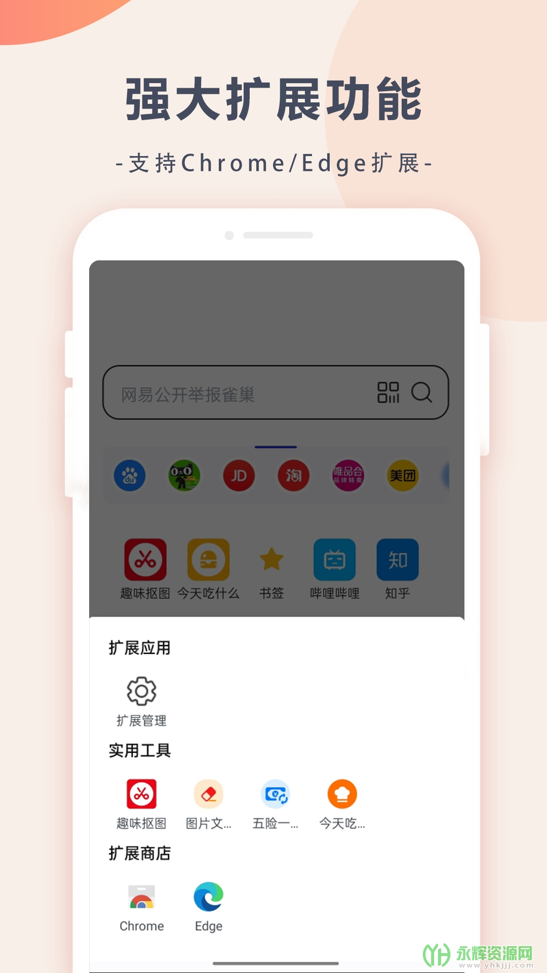 支持谷歌和微软插件,提高浏览器功能性和扩展性。