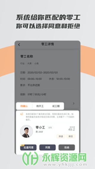 打零工是一个非常专业且用户众多的移动端掌上临时工作和兼职招聘平台应用软件。这款软件为雇主和雇员提供了一个便捷的网络求职与招聘空间。这款软件致力于更高效地连接工作提供者与寻求者,满足不同人群的就业和招聘需求。如果您对这款软件感兴趣的话,不妨来永辉资源网下载体验一番吧!